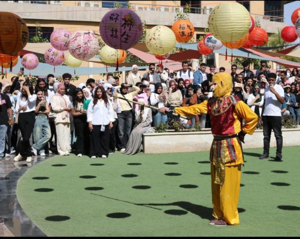 The festival featured Chinese calligraphy and paper‑cutting workshops, a Hanfu costume zone, booths with Chinese snacks like dumplings and steamed buns, and a tea‑art corner. The highlight of the day was a martial‑arts performance, conducted by Egyptian students, which drew enthusiastic applause and was followed by an interactive session where spectators tried basic moves on stage.